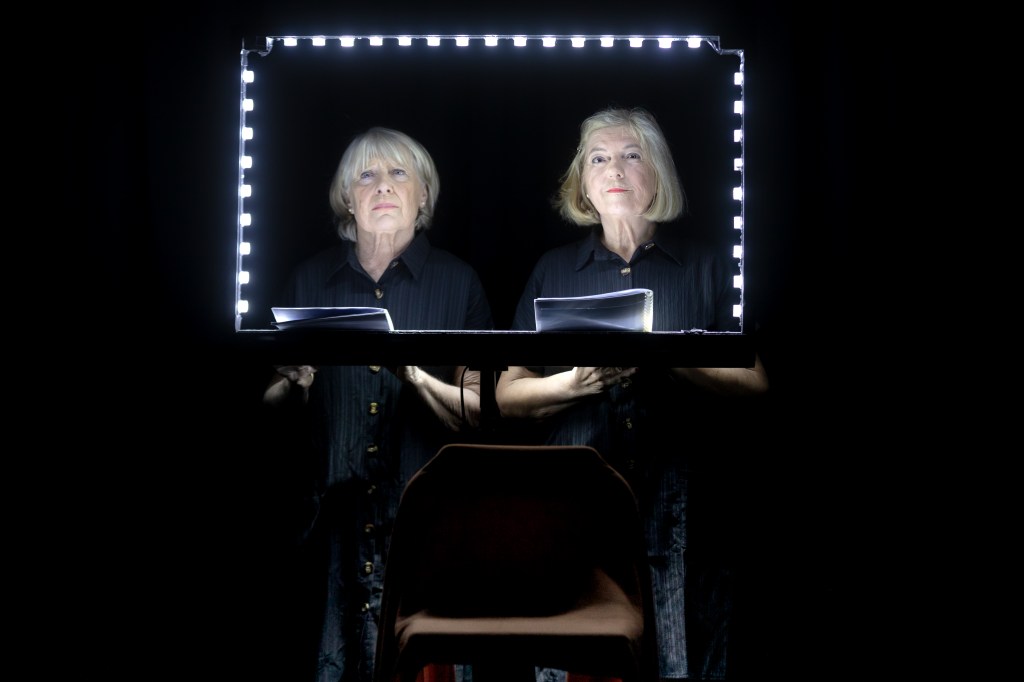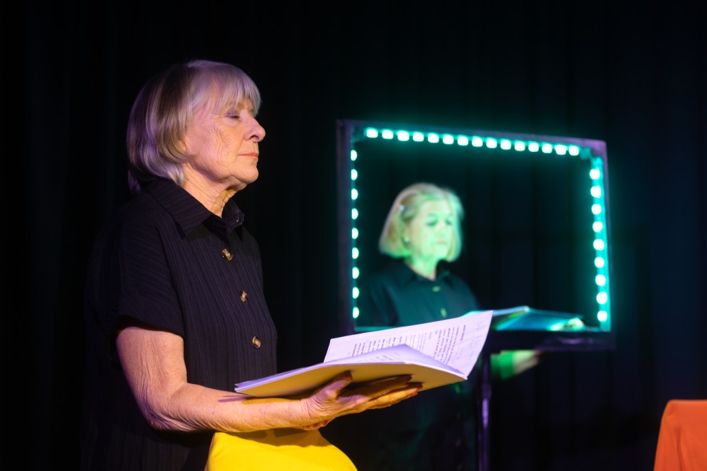 Un plateau de théâtre vide. Une comédienne répète un texte. Elle est interrompue par une metteuse en scène.